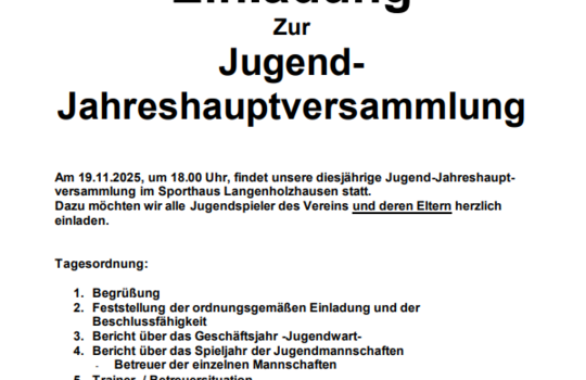 Dazu möchten wir alle Jugendspieler des Vereins und deren Eltern herzlich einladen.....