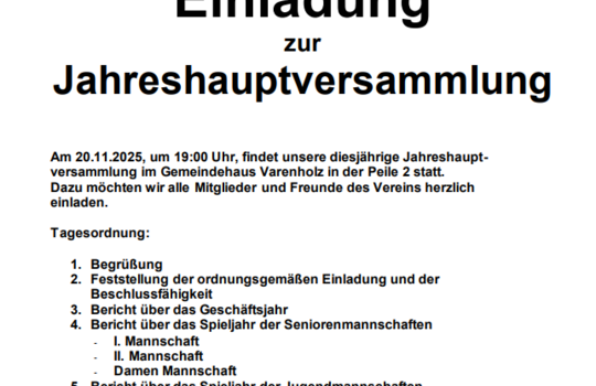Einladung zur Jahreshauptversammlung